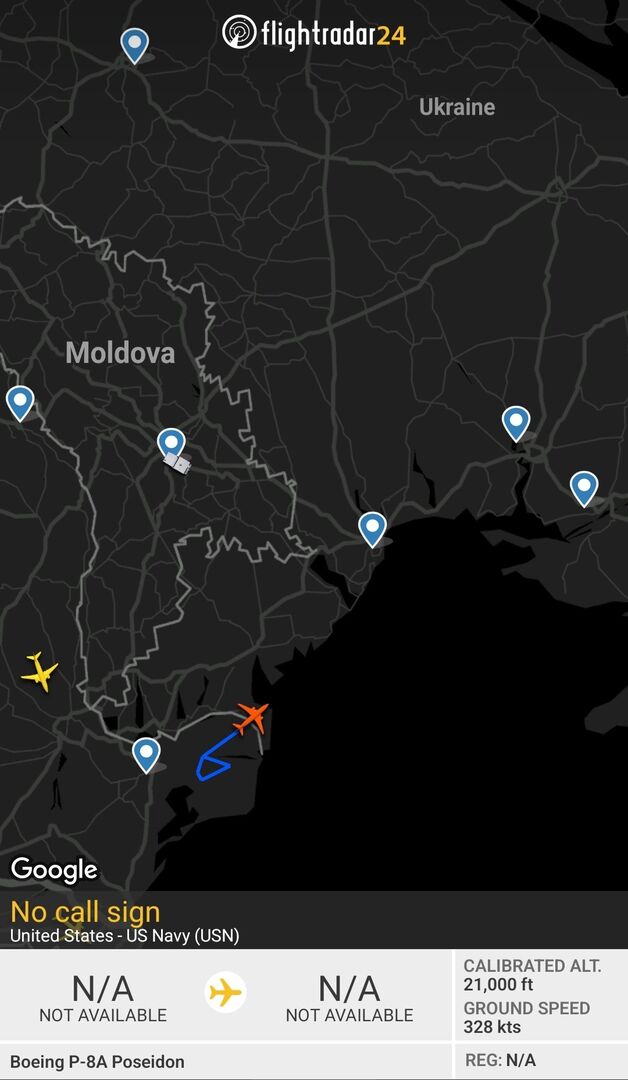 Máy bay P-8A của Hải quân Hoa Kỳ đã đi vào không phận Ukraine gần biên giới Romania trước khi tắt bộ phát tín hiệu của nó.