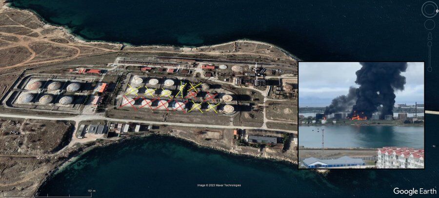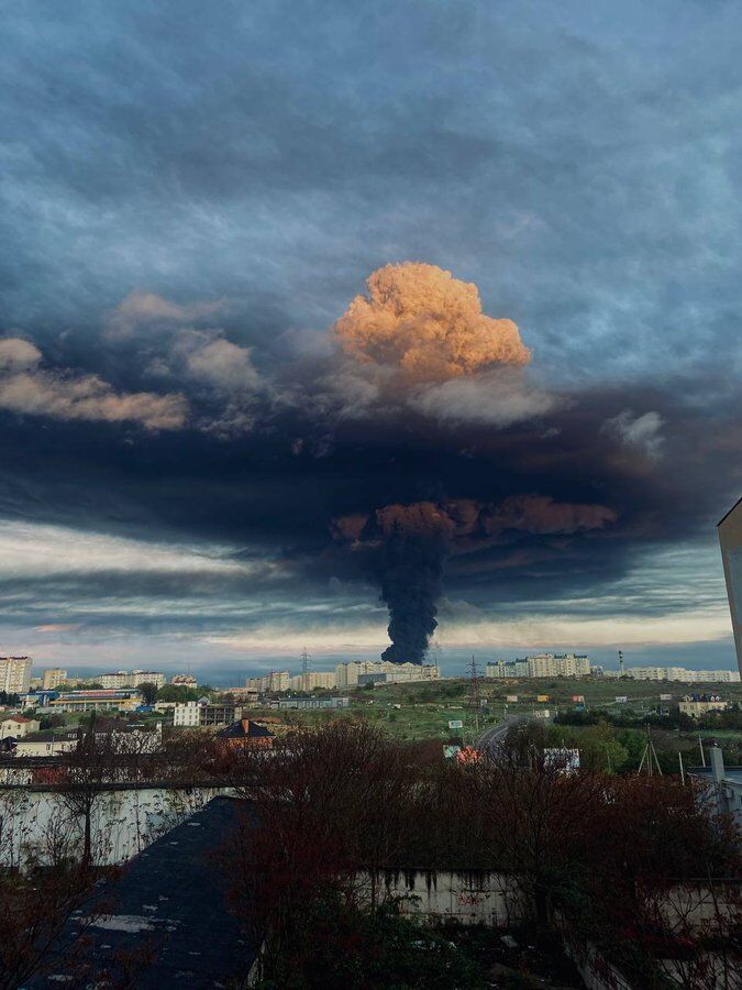 Bốn bồn chứa bị hư hại tại một kho chứa dầu ở Sevastopol sau cuộc tấn công của hai máy bay không người lái. Bản thân đám cháy gần như được khoanh vùng, nó được lên kế hoạch dập tắt hoàn toàn vào tối thứ Bảy.