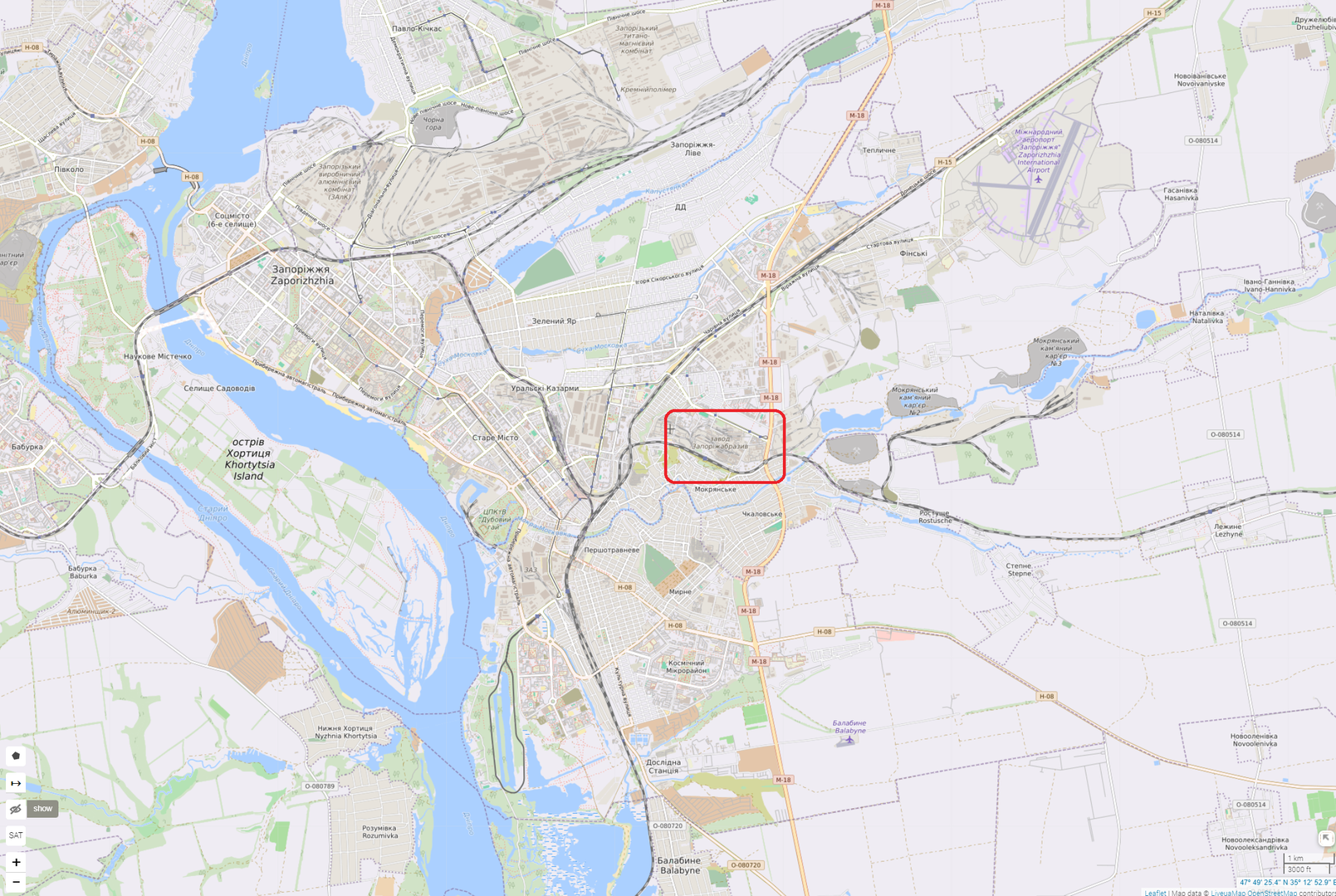 Có thông tin về mục tiêu ở nhà máy mài Zaporozhye bị không kích. Vẫn đặc điểm chung giống Pavlograd là nhà máy và khu công nghiệp, gần các tụ điểm giao thông đường bộ và đường sắt. Em này lại combo thêm đặc điểm là cầu vượt sông Dnepr mữa.