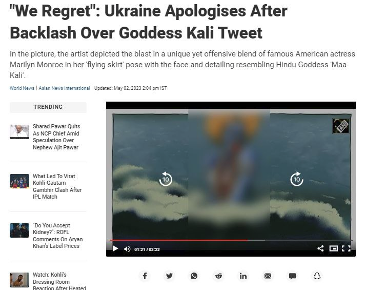 Ukraine xin lỗi vì tweet của Bộ Quốc phòng với nữ thần Hindu