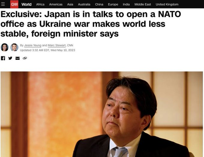 Trả lời phỏng vấn CNN, Ngoại trưởng Yoshimasa Hayashi cho biết Nhật Bản muốn mở văn phòng NATO tại Tokyo.