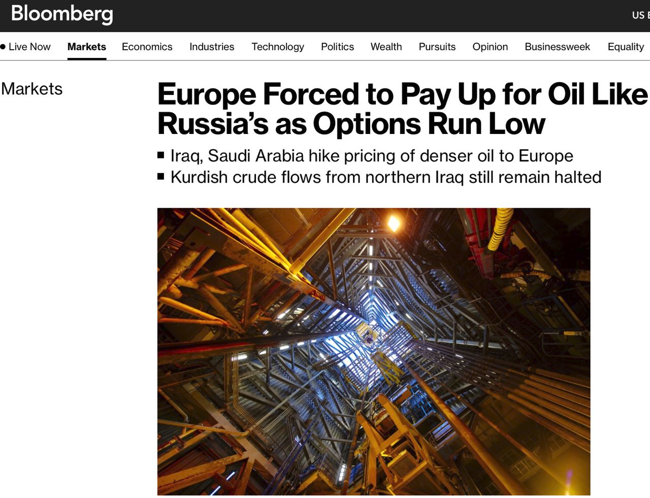 🛢🇸🇦🇮🇶🇪🇺 Bloomberg: Iraq và Saudi Arabia tăng giá dầu cho châu Âu