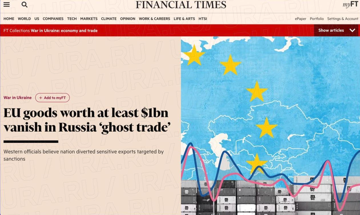 🇷🇺🇪🇺🤷♀️ FT: Hàng hóa trị giá một tỷ đô la từ Liên minh châu Âu đã biến mất không dấu vết ở Nga
