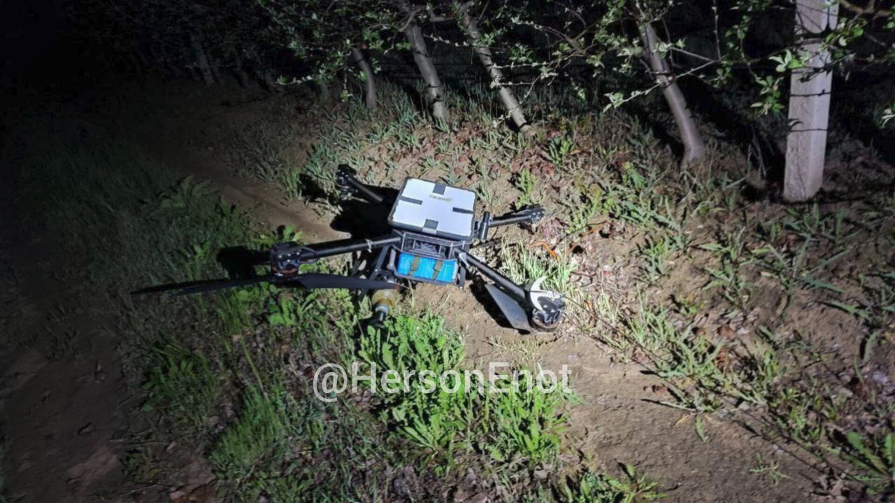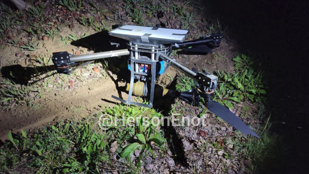 Các phóng viên quân sự Nga viết rằng máy bay không người lái mang theo hai quả lựu đạn nhiệt áp, một trong số đó đã bị rơi.