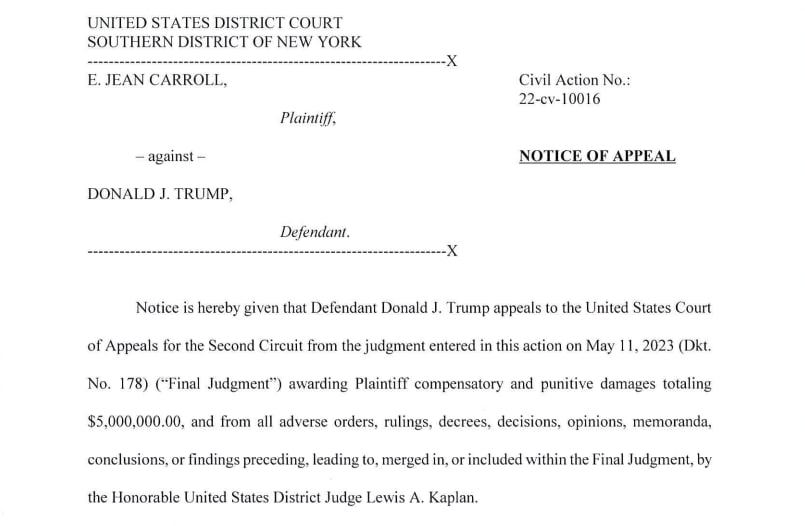 🇺🇸 Trump nộp Thông báo Kháng cáo trong vụ án Jean Carroll