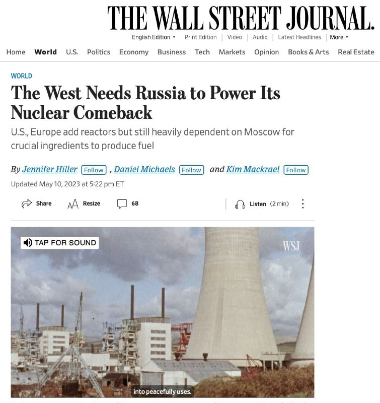 ❗️ Năm ngoái, Hoa Kỳ đã mua của Rosatom đơn hàng gần một tỷ đô la, The Wall Street Journal viết, "một phần lớn nền kinh tế Hoa Kỳ cần nhiên liệu của Nga." Trong khi sự phụ thuộc này là không thể vượt qua.