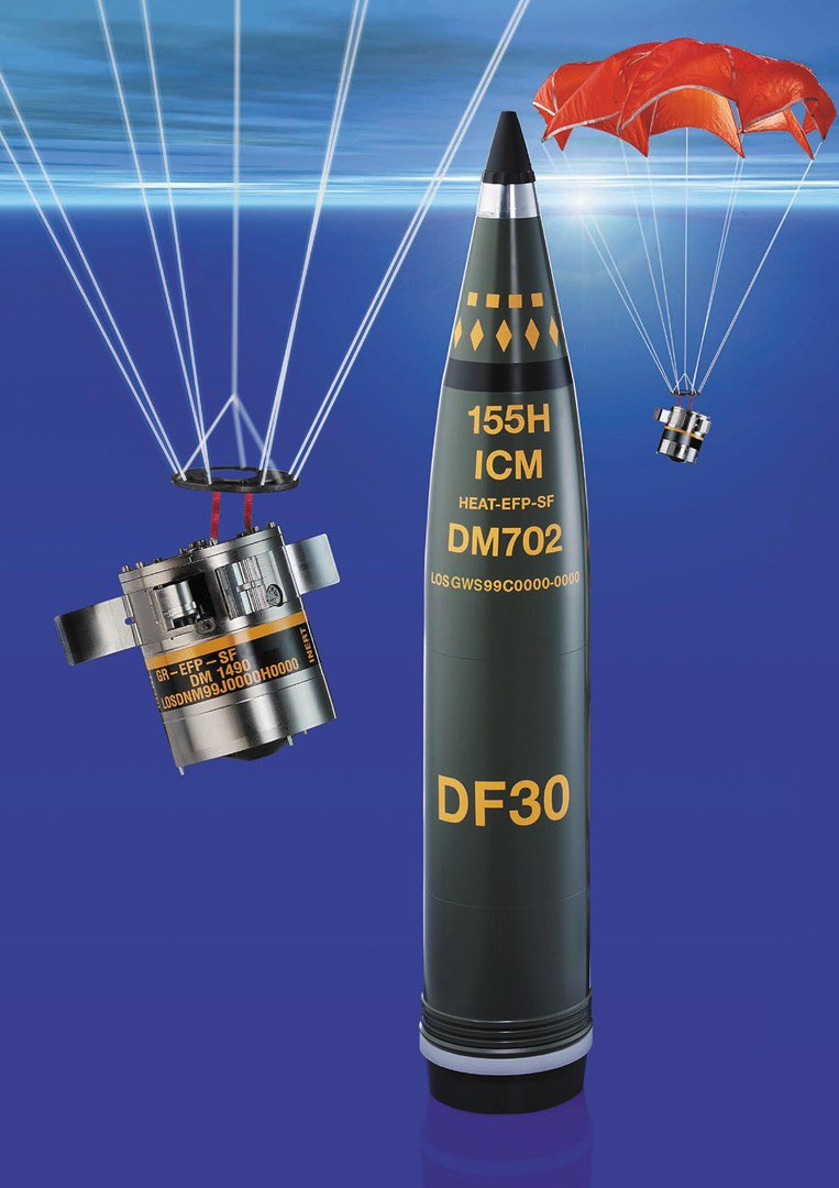 🔹 Được biết, đạn pháo DM 702 hay còn gọi là SMArt 155 (tiếng Đức: suchzünder-Munition für die Artillerie) bắt đầu được phát triển tại Đức vào cuối những năm 1980. Những loại đạn này là đạn chùm 155 mm, mỗi quả chứa hai đầu đạn con dẫn đường để chống lại xe bọc thép ở khoảng cách trung bình.