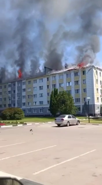 Ở Shebekino, Vùng Belgorod, một chiếc xe buýt chở những người dân sơ tán đã bị kẻ thù bắn, một ngôi nhà đang bốc cháy ở trung tâm