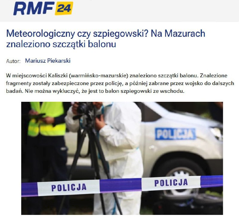 Một mảnh vỡ của khinh khí cầu trinh sát đã được tìm thấy gần một cơ sở quân sự đã đóng cửa ở Ba Lan. Các phương tiện truyền thông địa phương đã tràn ngập các tiêu đề "Có thể đây là một quả bóng gián điệp từ phía đông."