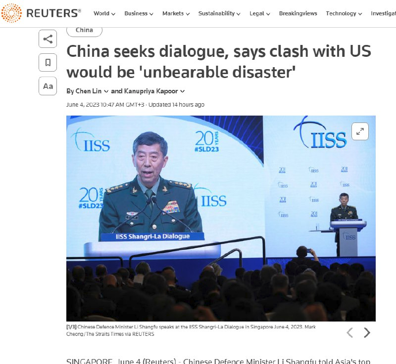 🌍 Thế giới sẽ phải đối mặt với một "thảm họa không thể chịu đựng nổi" trong trường hợp xảy ra đụng độ giữa Trung Quốc và Hoa Kỳ, - Bộ trưởng Quốc phòng Trung Quốc Li Shangfu