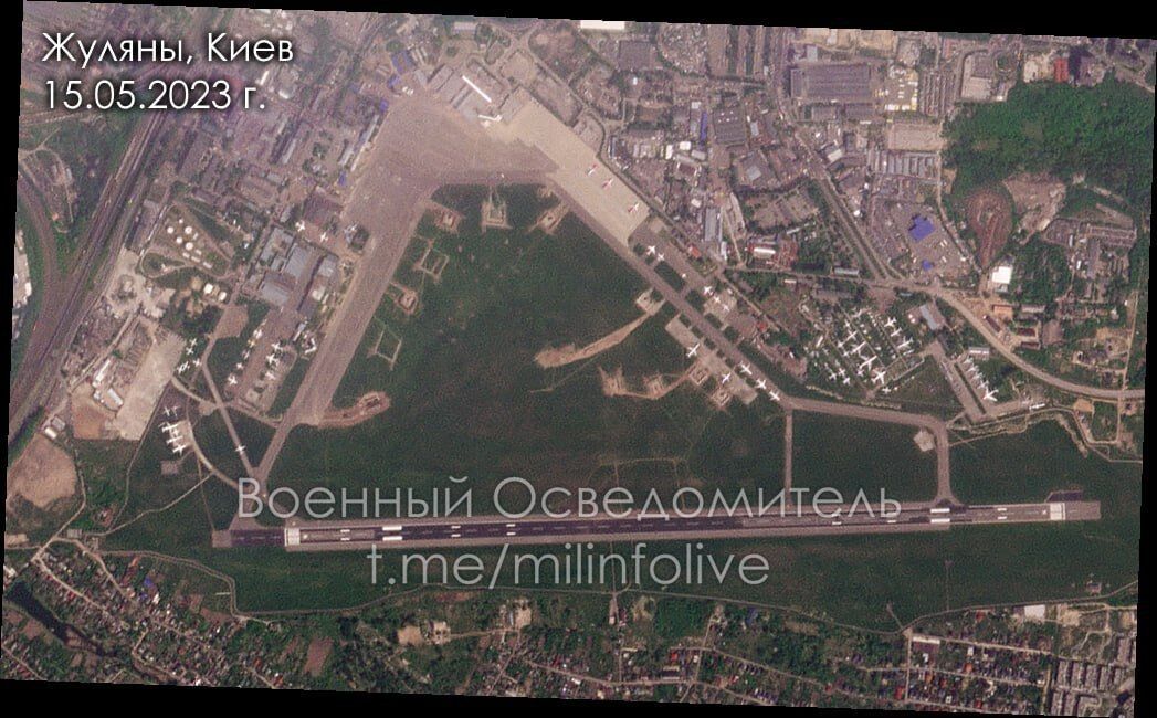 Hình ảnh vệ tinh của sân bay Zhuliany cho thấy vị trí của hệ thống phòng không MIM-104 Patriot vào đêm ngày 16 tháng 5.
