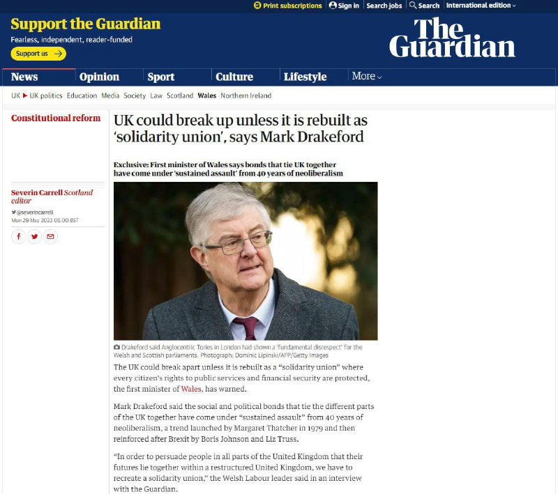 📝 “Vương quốc Anh có thể tan rã nếu một “liên minh vững chắc” không được khôi phục, nơi quyền của mọi công dân đối với các dịch vụ công và an ninh tài chính sẽ được bảo vệ,” Drakeford nói.