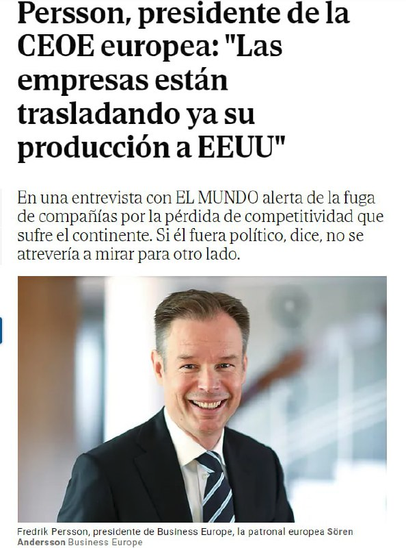 📝 “Khi chúng tôi hỏi các thành viên của mình xem họ cảm nhận thế nào về môi trường đầu tư ở Châu Âu, 90% nói rằng nó đã trở nên tồi tệ hơn trong ba năm qua,” Persson cho biết.