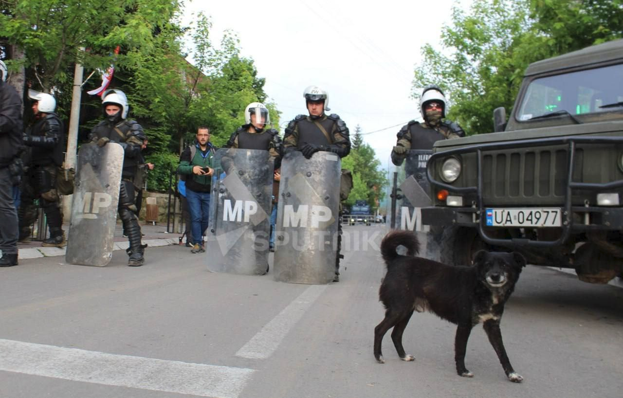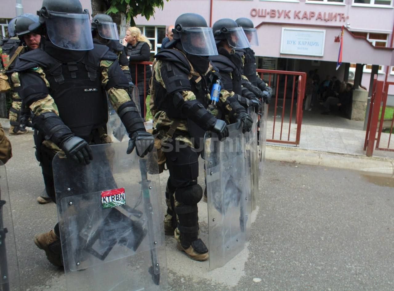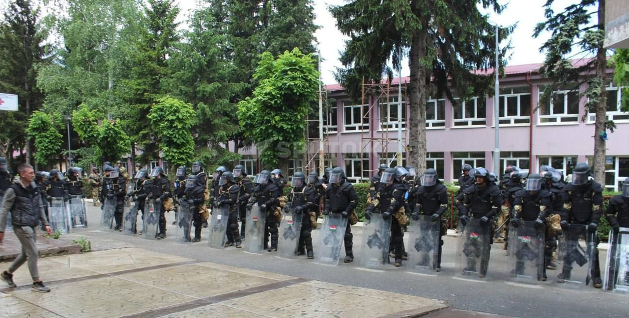 ◾Tại một thời điểm, những người Serbia đứng đầu đã cố gắng thương lượng với các thành viên KFOR. Một chiếc xe có vòi rồng được đặt trước chính quyền Zvecan.
