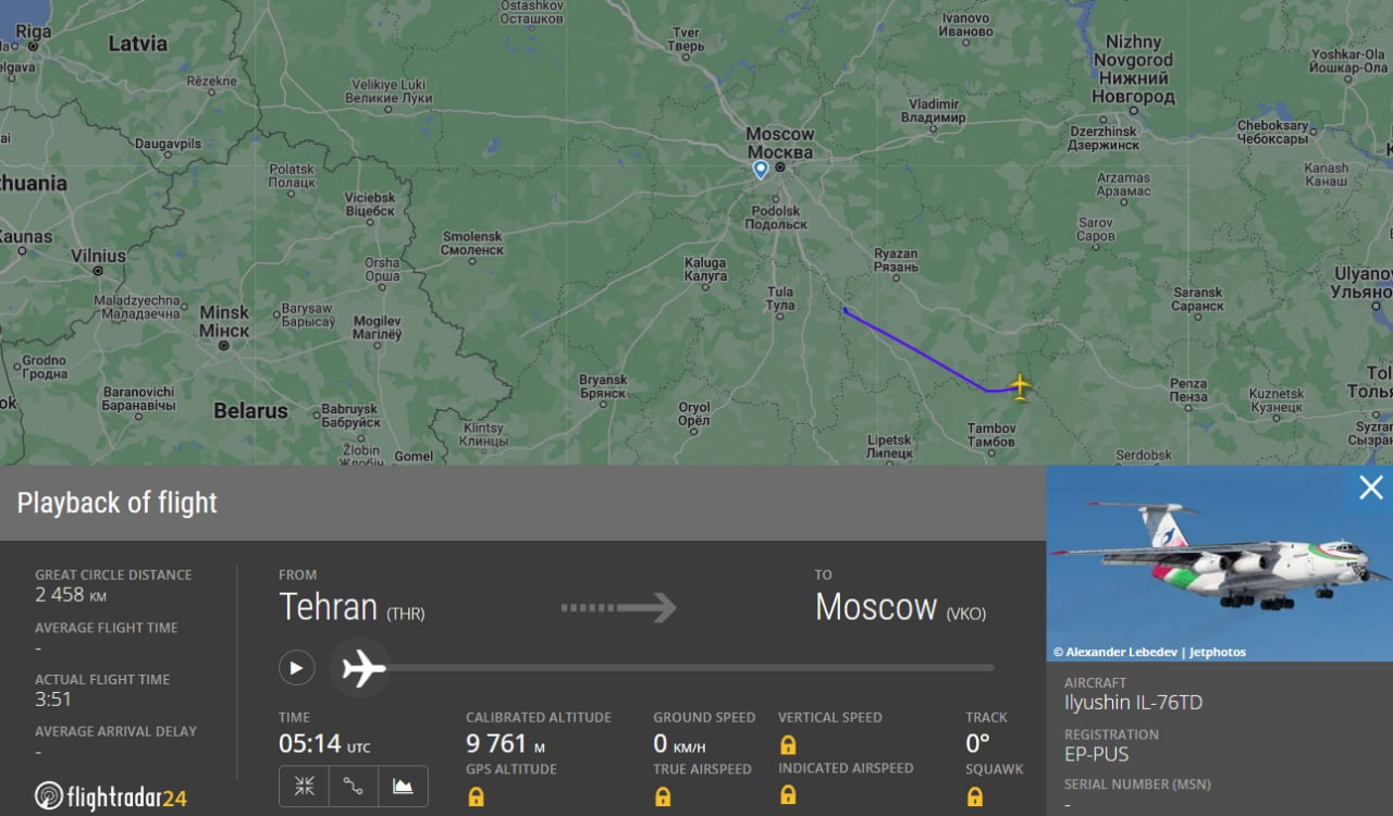 Vào ngày 29 tháng 5, một chiếc Il-76TD của Lực lượng Không quân Iran đã bay tới Moscow từ Tehran với một hàng hóa không xác định đến.