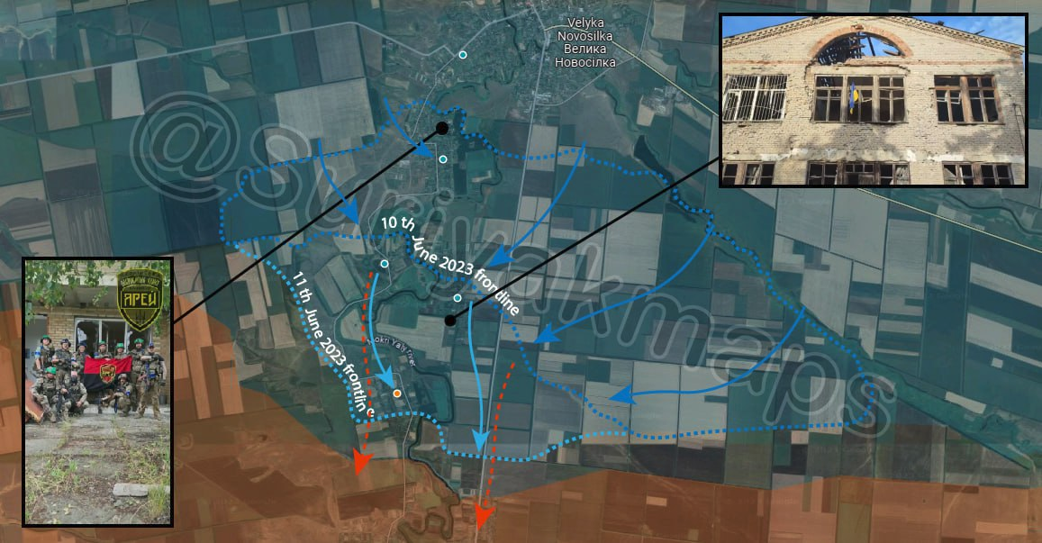 Tình hình phía tây nam Donetsk: Đoạn video cho thấy Quân đội Ukraine bên trong các thị trấn Neskuchne/Neskuchne (47.821993, 36.811576) và Blahodatne/Blagodatne (47.794602, 36.813852) sau khi Quân đội Nga rút quân. Trong hai ngày qua, các lực lượng Ukraine đã phát động một cuộc tấn công từ hai trục dẫn đến việc chiếm lại hoàn toàn phần nhô ra xung quanh sông Mokri Yali, cho phép quân đội di chuyển tiền tuyến từ Velyka Novosilka / Velika Novosílka. Hơn nữa, thị trấn Storozheve/Storoževe và hầu hết Makarivka Makarívka cũng đã bị chiếm lại, với các trận chiến tiến đến các thị trấn Staromaiors'ke/Staromajors'ke và Urozhaine/Urožajne.