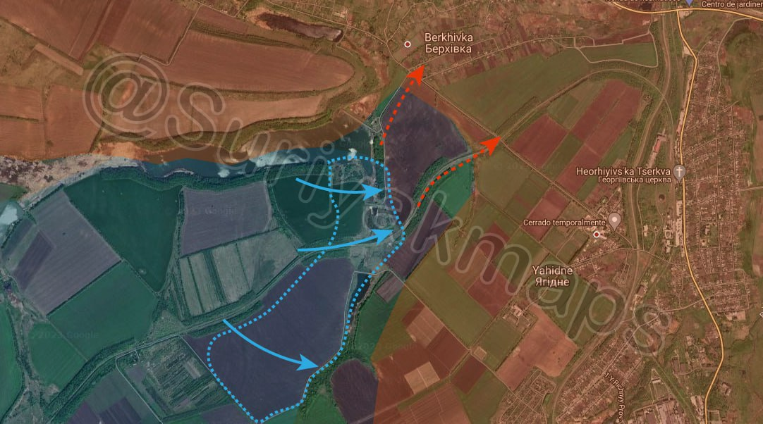 Tình hình phía bắc Bakhmut: Trong 36 giờ qua, Quân đội Ukraine đã chiếm lại các vị trí mới sau khi Quân đội Nga rút lui về thị trấn Berkhivka/Берхівка.
