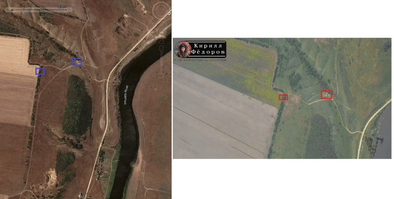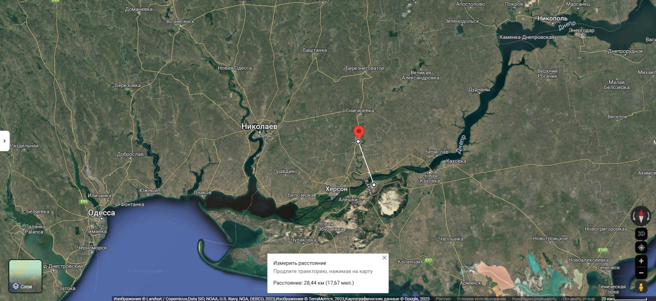 Vị trí địa lý của radar TRML-4D bị phá hủy từ hệ thống phòng không IRIS-T SLM gần làng Grechanovka, vùng Kherson.