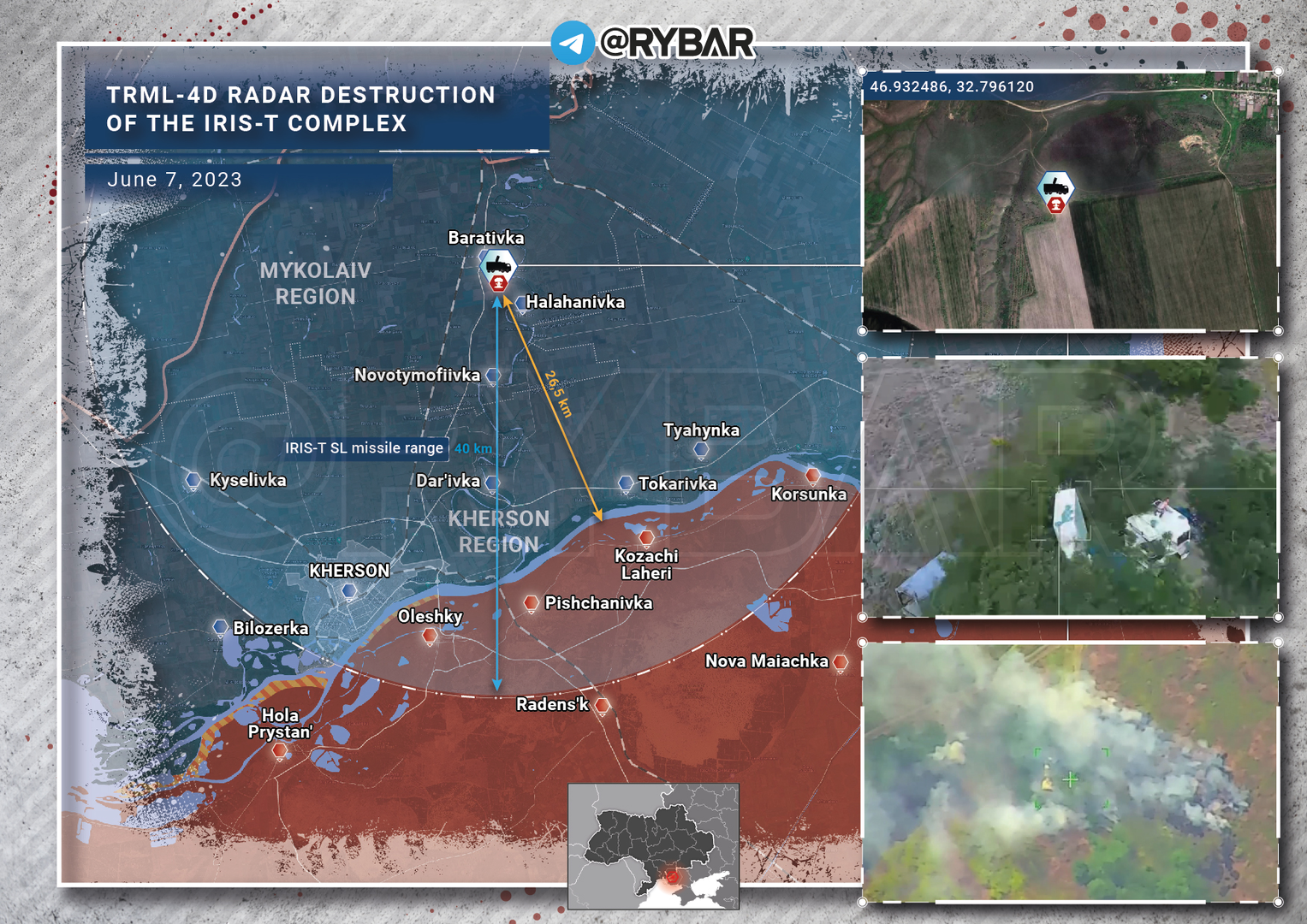 Điều gây tò mò là vị trí của khẩu đội nằm gần làng Baratovka, cách tuyến giao tranh 26 km. Rõ ràng, tại khu vực này, IRIS-T đã cố gắng "bắt" lại các máy bay của Lực lượng Hàng không Vũ trụ Nga, đang lập kế hoạch ném bom cải tiến UMPC vào các mục tiêu ở hữu ngạn sông Dnepr.