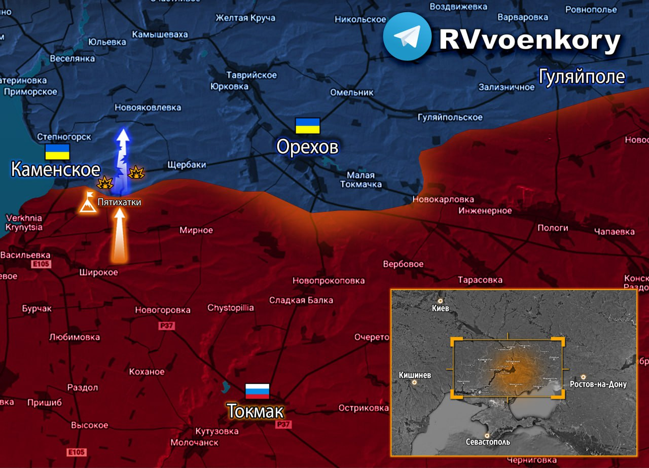 ➨ Pyatikhatki cuối cùng cũng ở trong vùng xám, nhưng kẻ thù đang cố gắng phản công ở hai bên sườn, giao tranh ác liệt vẫn tiếp tục.