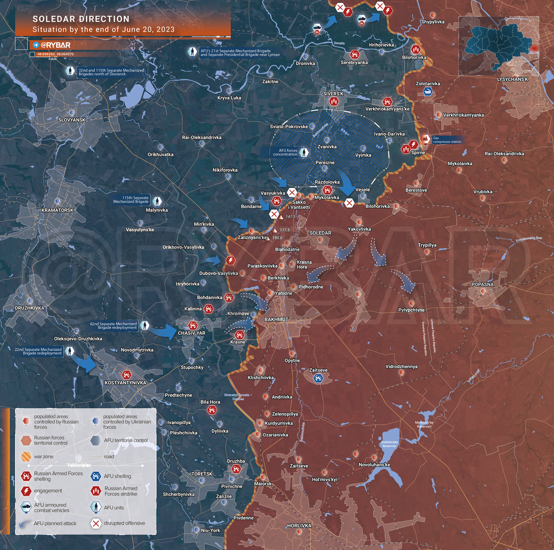 ❗️🇷🇺🇺🇦 Tình hình hướng Soledar đến hết ngày 20 tháng 6 năm 2023