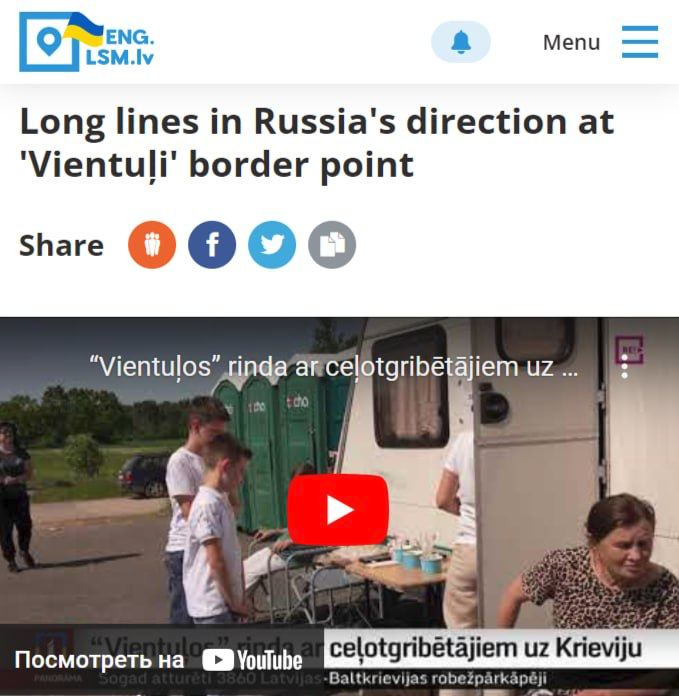 Truyền hình Latvia: "Hàng dài công dân Ukraine xếp hàng ở biên giới, cố gắng rời quay về Nga."