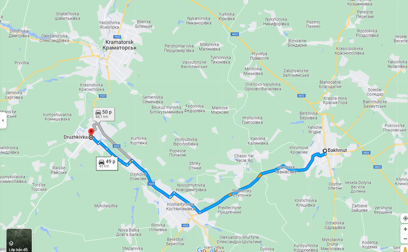 Nhìn trên bản đồ thì Druzhkovka còn là hậu phương của Kostiantynivka, khéo Nga thu đẫy tay với đòn không kích này.