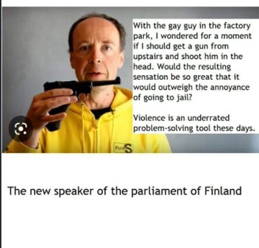 🇫🇮Một nghị sĩ kêu gọi sát hại binh lính Nga đã trở thành người phát ngôn mới của quốc hội Phần Lan.🤦♂️
