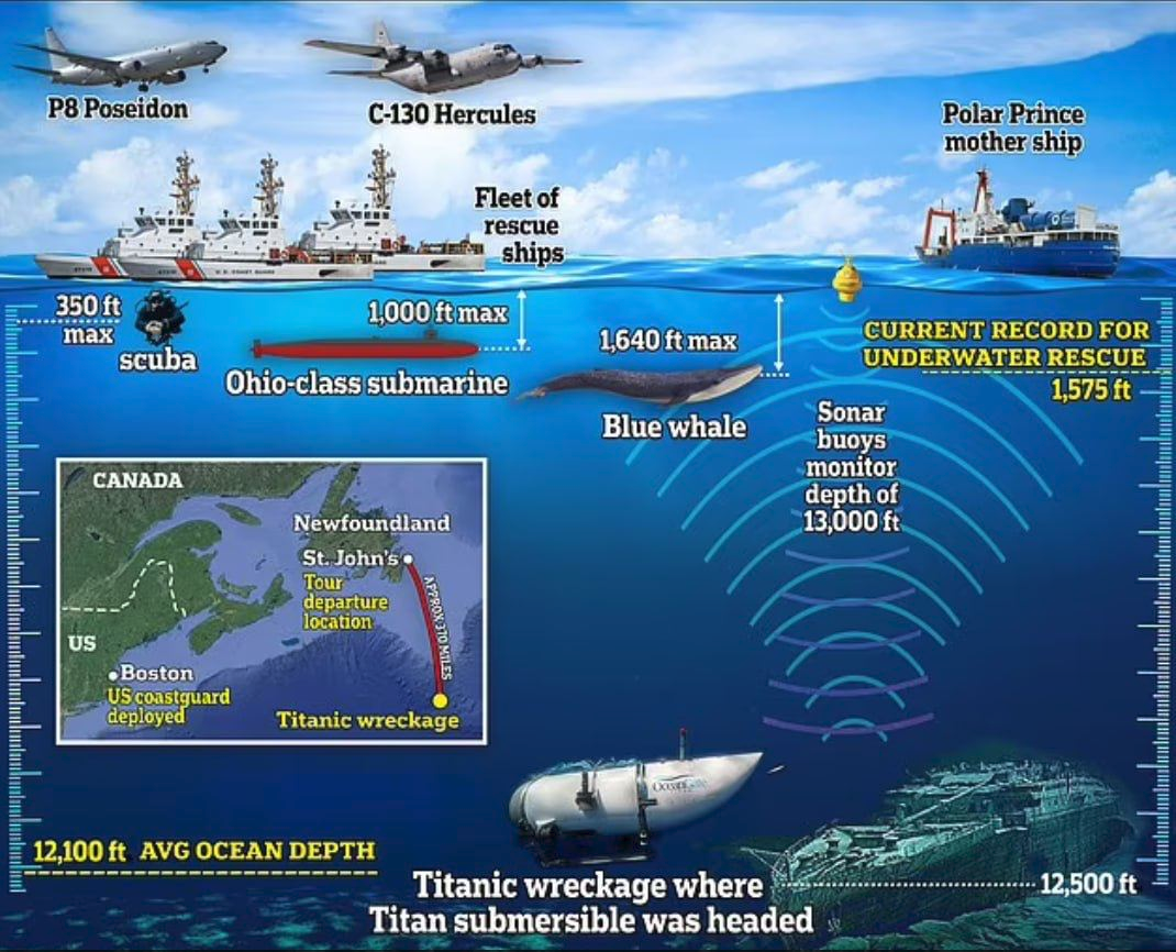Trước đó có thông tin cho rằng một máy bay Canada đã ghi lại tiếng ồn dưới nước trong khu vực tìm kiếm Titan. Anh ta đã giao đoạn ghi âm cho Lực lượng bảo vệ bờ biển Hoa Kỳ để phân tích.