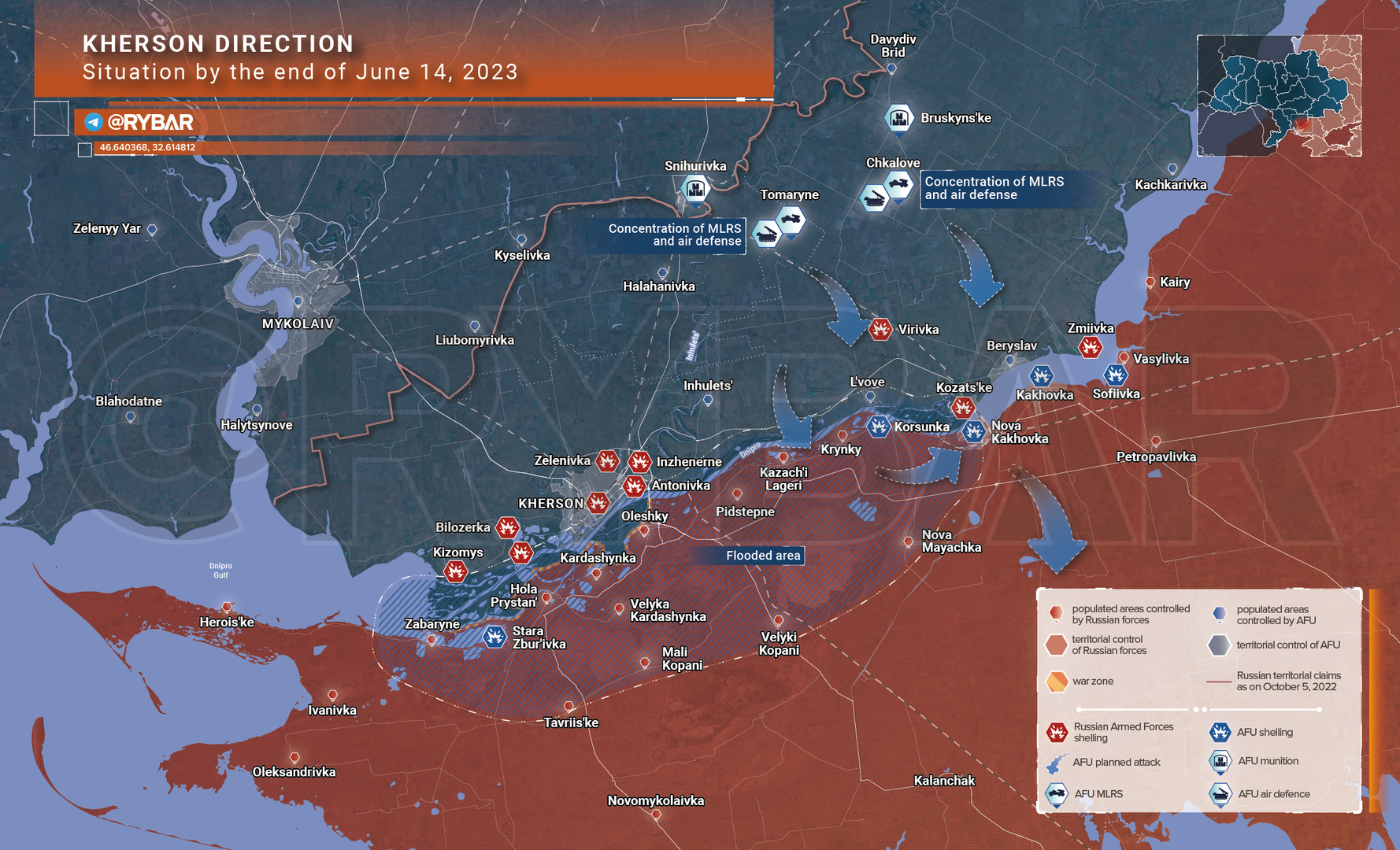 ❗️🇷🇺🇺🇦 Tình hình hướng Kherson đến hết ngày 14 tháng 6 năm 2023