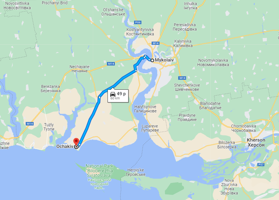 Hai chỗ này cách xa nhau, Nokolaev chỉ tấn công bằng tên lửa hành trình đc thôi, tầm pháo ko với tới.