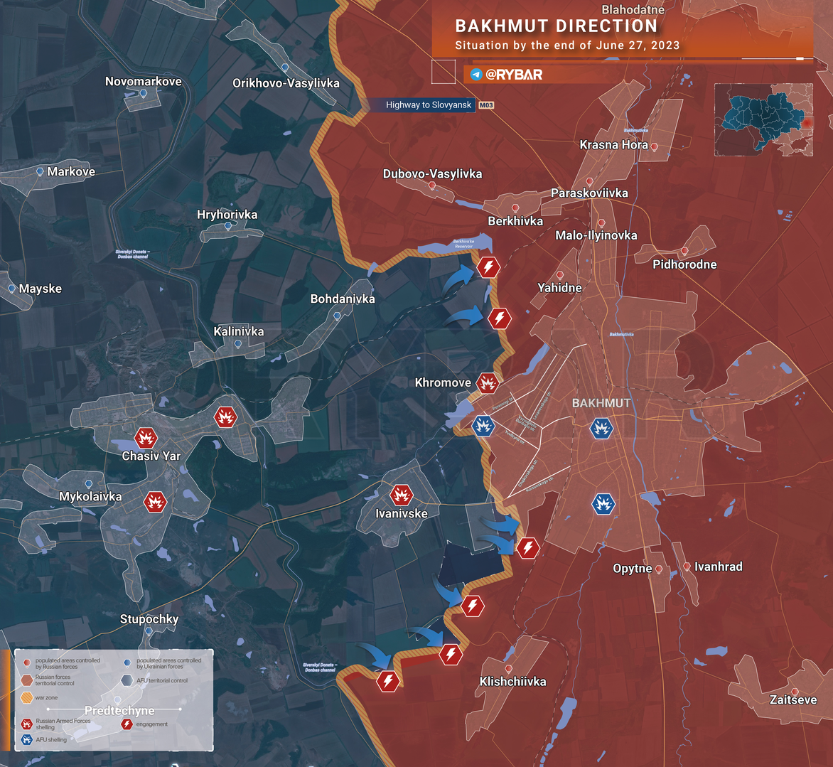 ❗️🇷🇺🇺🇦 Tình hình hướng Bakhmut đến hết ngày 27 tháng 6 năm 2023
