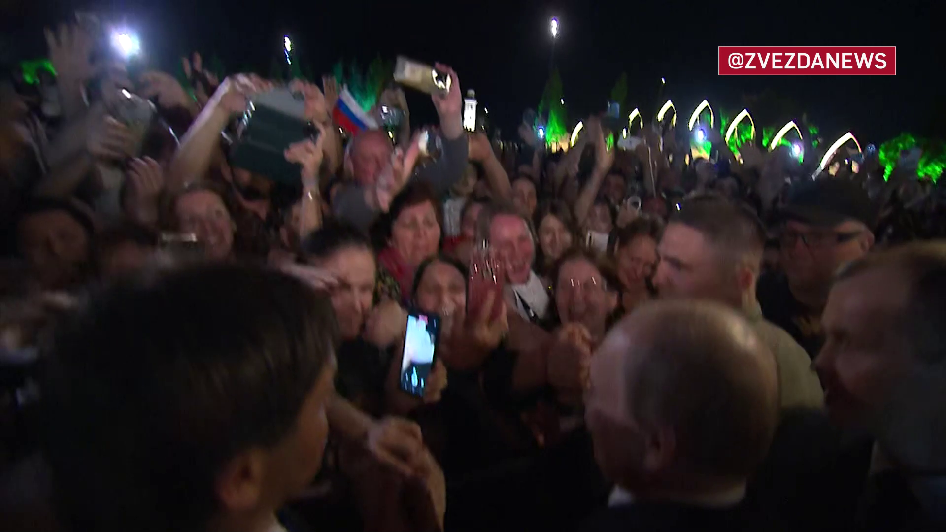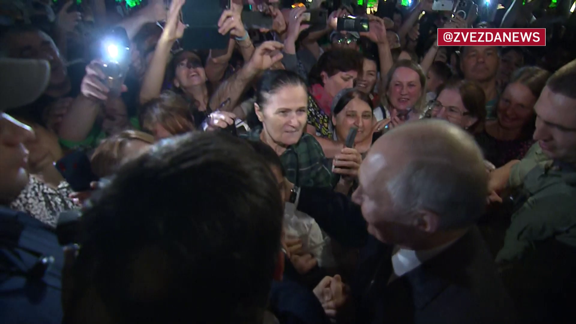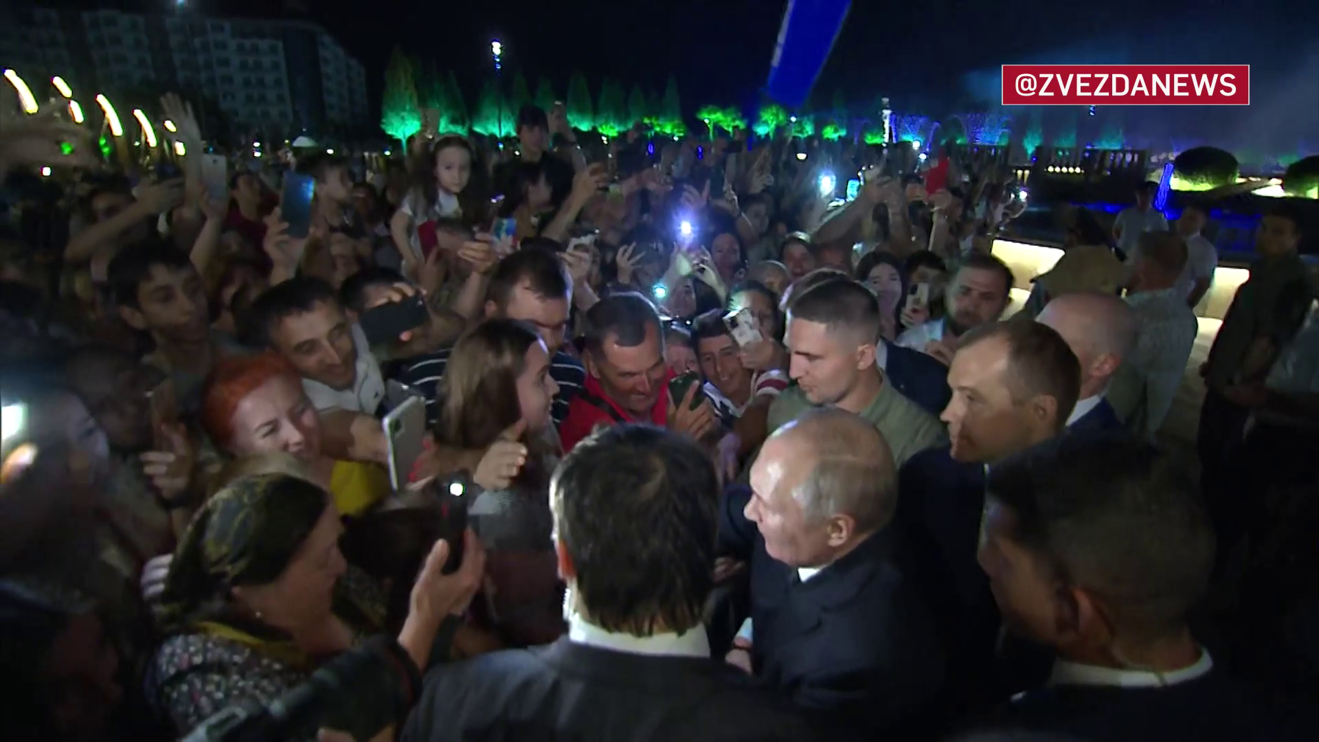 Tổng thống Vladimir Putin ra ngoài nói chuyện với người dân Derbent, Dagestan - tại quảng trường chính với rất đông người dân. Phản ứng của cư dân rất xúc động.