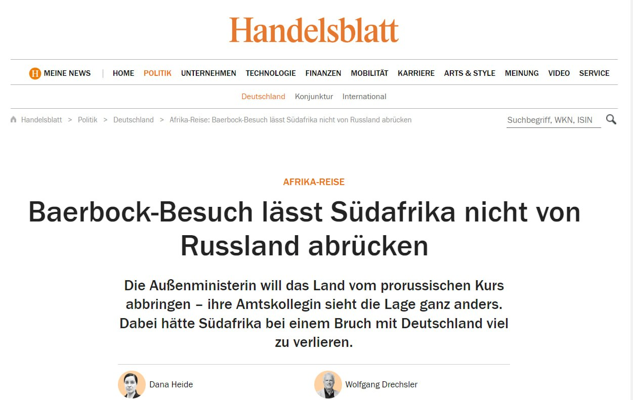 🇿🇦 🇩🇪 🇷🇺 Burbock đã thất bại trong việc chia rẽ Nam Phi và Nga - Handelsblatt