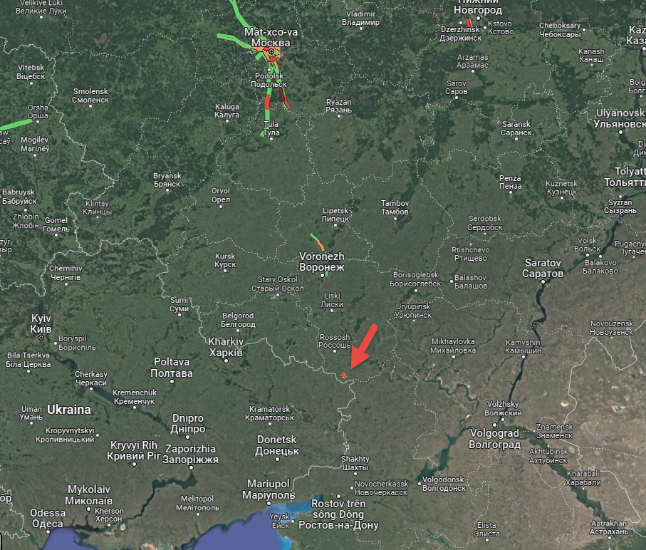 Tin khác là máy bay An-24, bị rơi gần khu dân cư Kantemirovka (xem vị trí được trỏ bằng mũi tên đỏ trên ảnh). Theo tin chưa đầy đủ, trên máy bay có ít nhất 3 người.