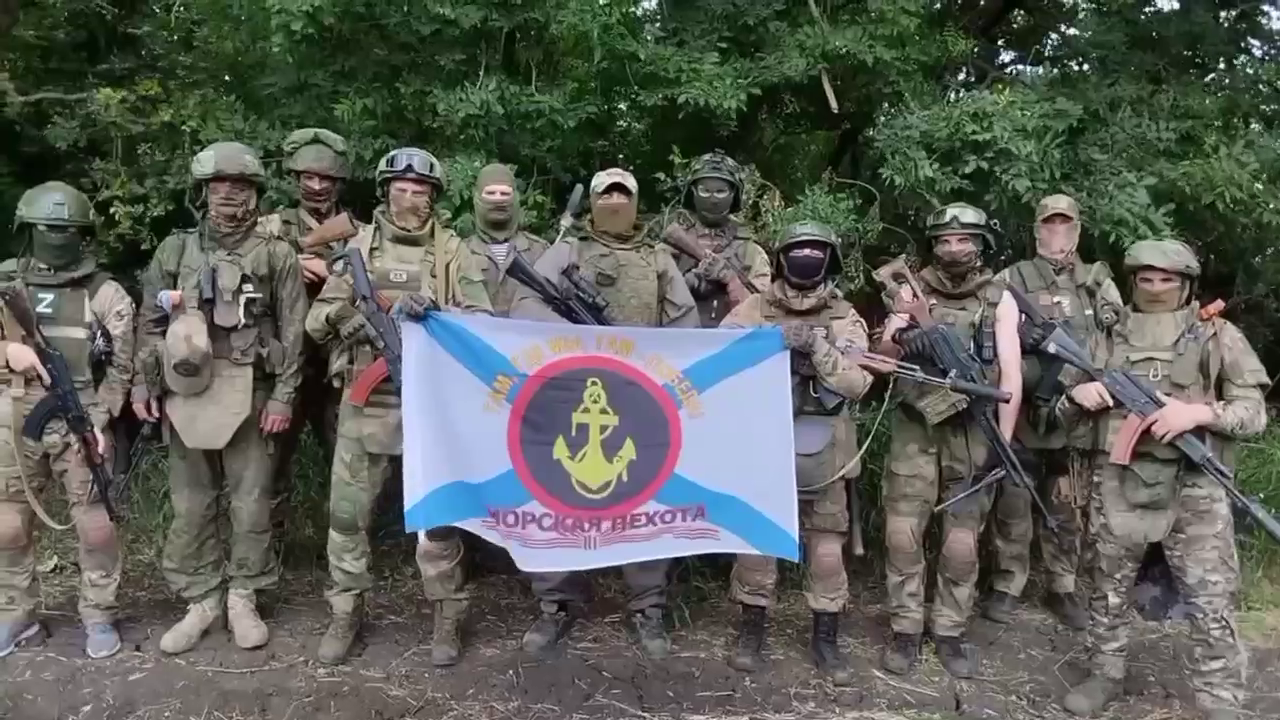 Lữ thủy quân lục chiến 155 Hải quân Nga từ tiền tuyến. Nhắc lại lời thể trung thành với Tổ quốc, phục tùng chỉ huy tối cao là Tổng tư lệnh V. Putin.