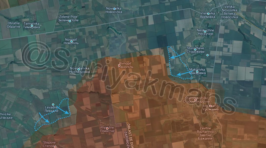 Tình hình phía tây nam Donetsk: Quân đội Ukraine đã có những bước tiến mới ở phía đông Levadne và phía tây Makarivka như một màn dạo đầu của một cuộc tấn công bên sườn nhằm giảm bớt một lần nữa điểm nổi bật xung quanh Rivnopil.