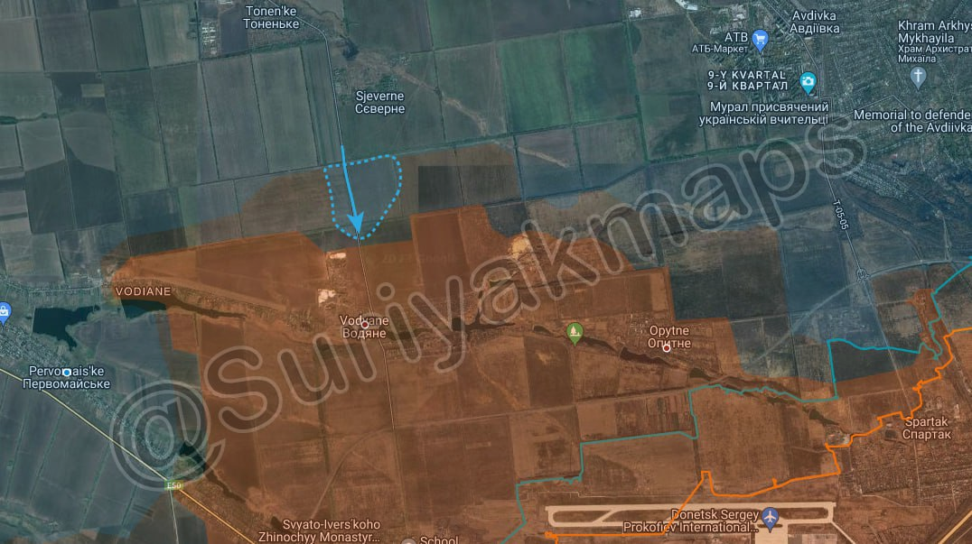 Tình hình phía bắc thành phố Donetsk: Bản đồ đã được chỉnh sửa cho thấy Quân đội Ukraine đã giành lại quyền kiểm soát một số phần của chiến hào phía bắc Vodyane/Водяне trong tuần trước.