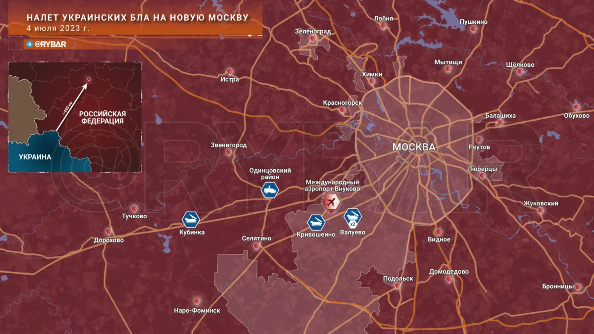Hai máy bay không người lái đã bị phá hủy gần làng Valuevo, một chiếc rơi xuống ga ra ở Krivosheino, một chiếc UAF khác chuẩn bị tấn công một đơn vị quân đội ở Kubinka và một phi hành đoàn EW đã hạ cánh một chiếc UAV ở đâu đó trong quận Odintsovo. Vấn đề máy bay không người lái Ukraine lọt sâu vào lãnh thổ Nga vẫn chưa biến mất. Đã và sẽ có những nỗ lực tấn công vào thủ đô - điều này phải được hiểu và tăng cường trong phòng không.