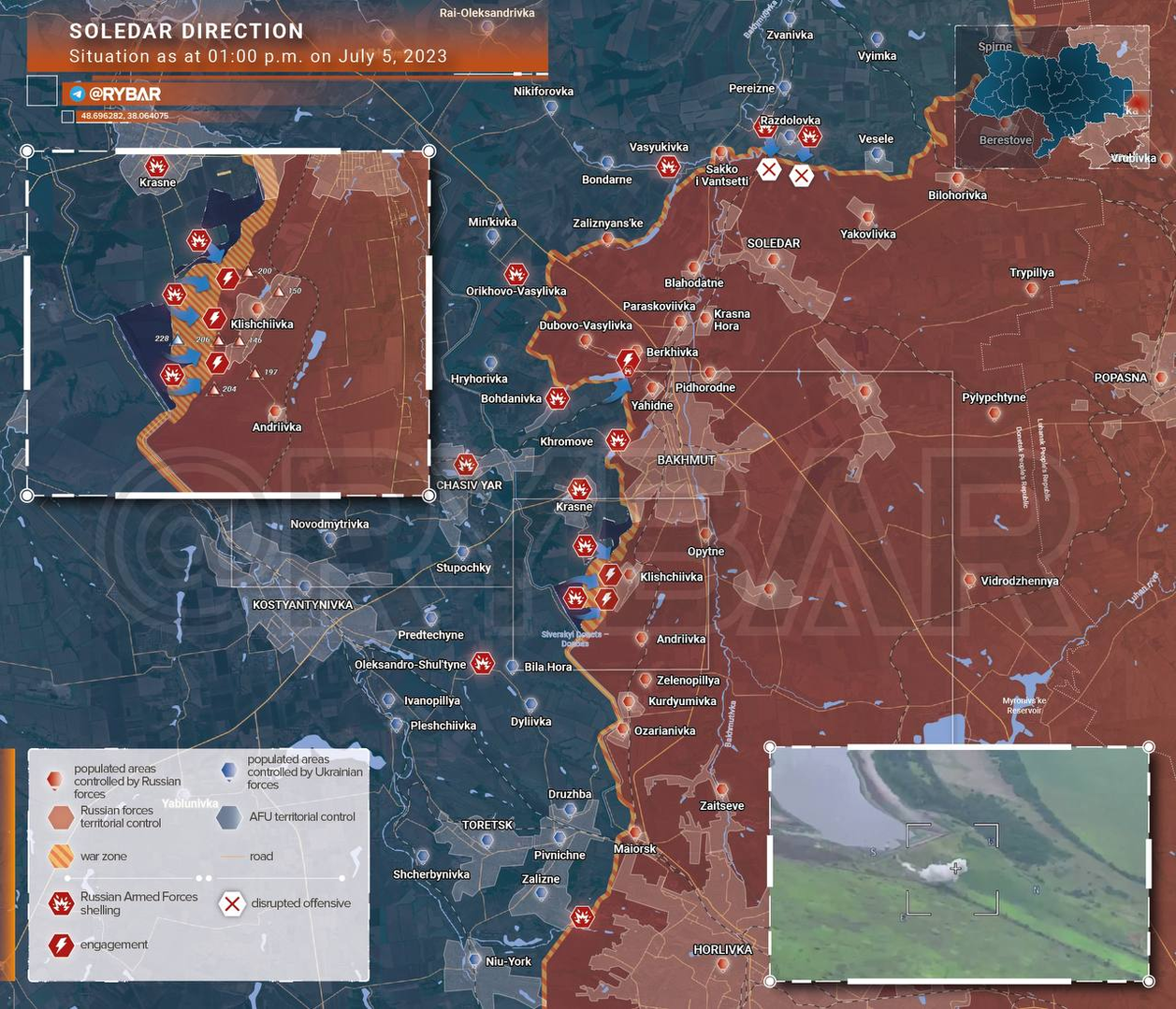 Mặt trận Soledar đến 13:00 (17:00 giờ Việt Nam) ngày 5 tháng 7 năm 2023