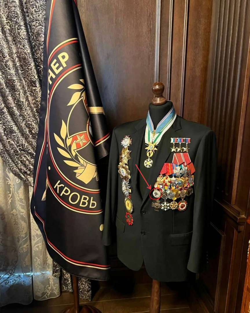 Trên chiếc áo vest đại lễ của Yevgeny Prigozhin, trong số rất nhiều giải thưởng còn có huy chương "Vì sự trở lại của Crimea"