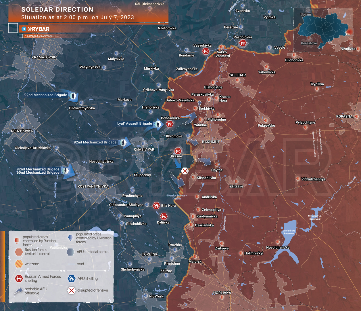 ❗️🇷🇺🇺🇦 Tình hình hướng Soledar tính đến 14:00 ngày 7 tháng 7 năm 2023