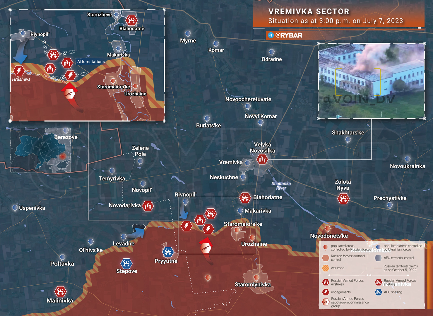 ❗️🇷🇺🇺🇦 Tình hình mấu lồi Vremievsky tính đến 15:00 ngày 7 tháng 7 năm 2023