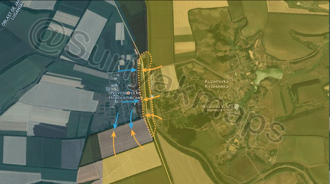 Tình hình tại mặt trận Luhansk: Quân đội Nga chiếm lại con phố đầu tiên của Novoselivs'ke/Новоселівське trong khi quân đội đang cố gắng tiến vào thị trấn từ trục phía nam.