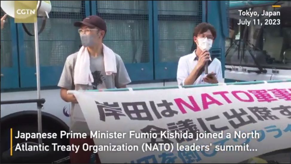 Những người biểu tình nói rằng NATO là một liên minh quân sự và họ kiên quyết phản đối việc Nhật Bản tham gia vào bất kỳ cuộc xung đột quân sự nào, CGTN đưa tin.