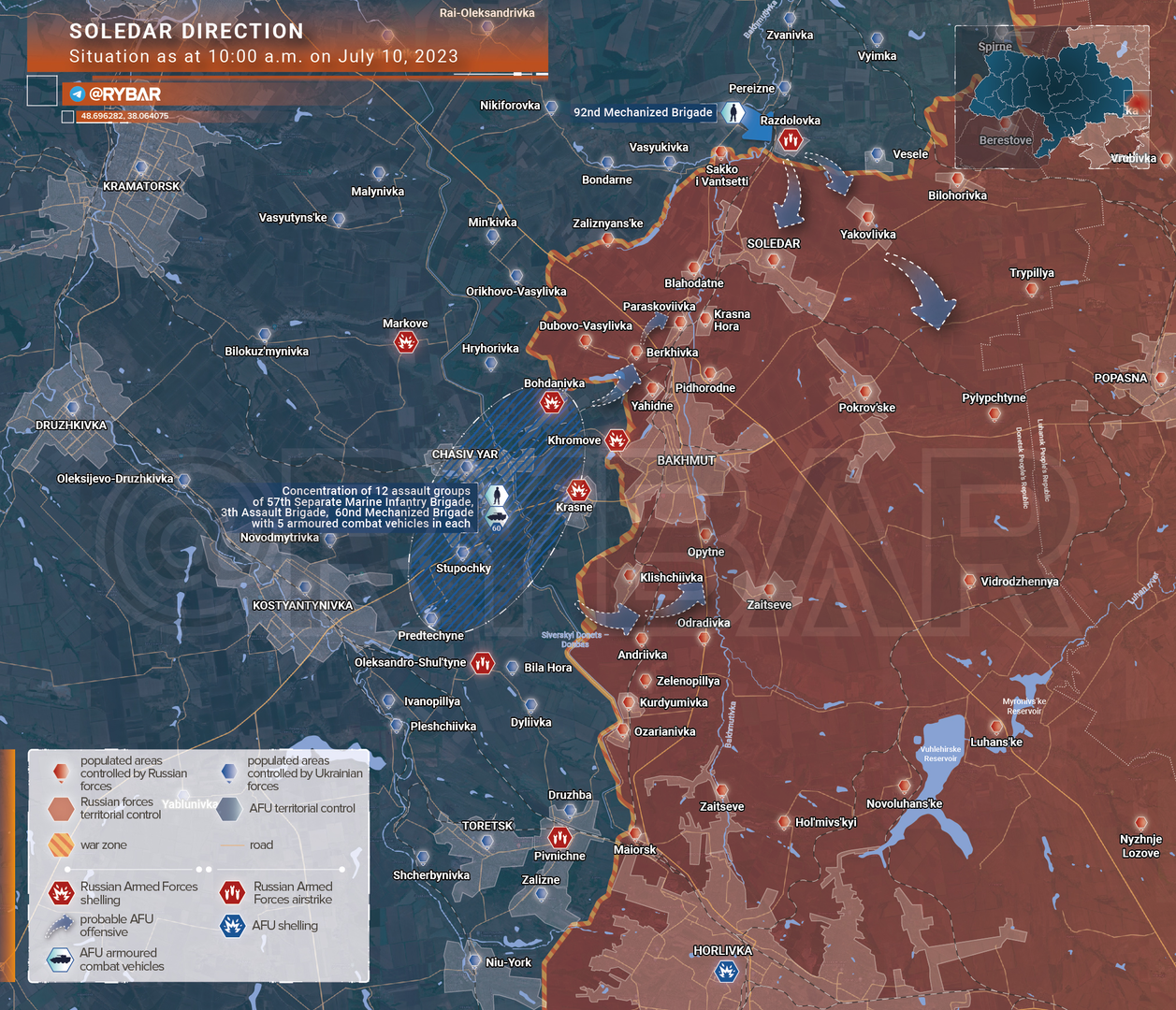❗️🇷🇺🇺🇦 Tình hình Hướng Soledar tính đến 10:00 ngày 10 tháng 7 năm 2023