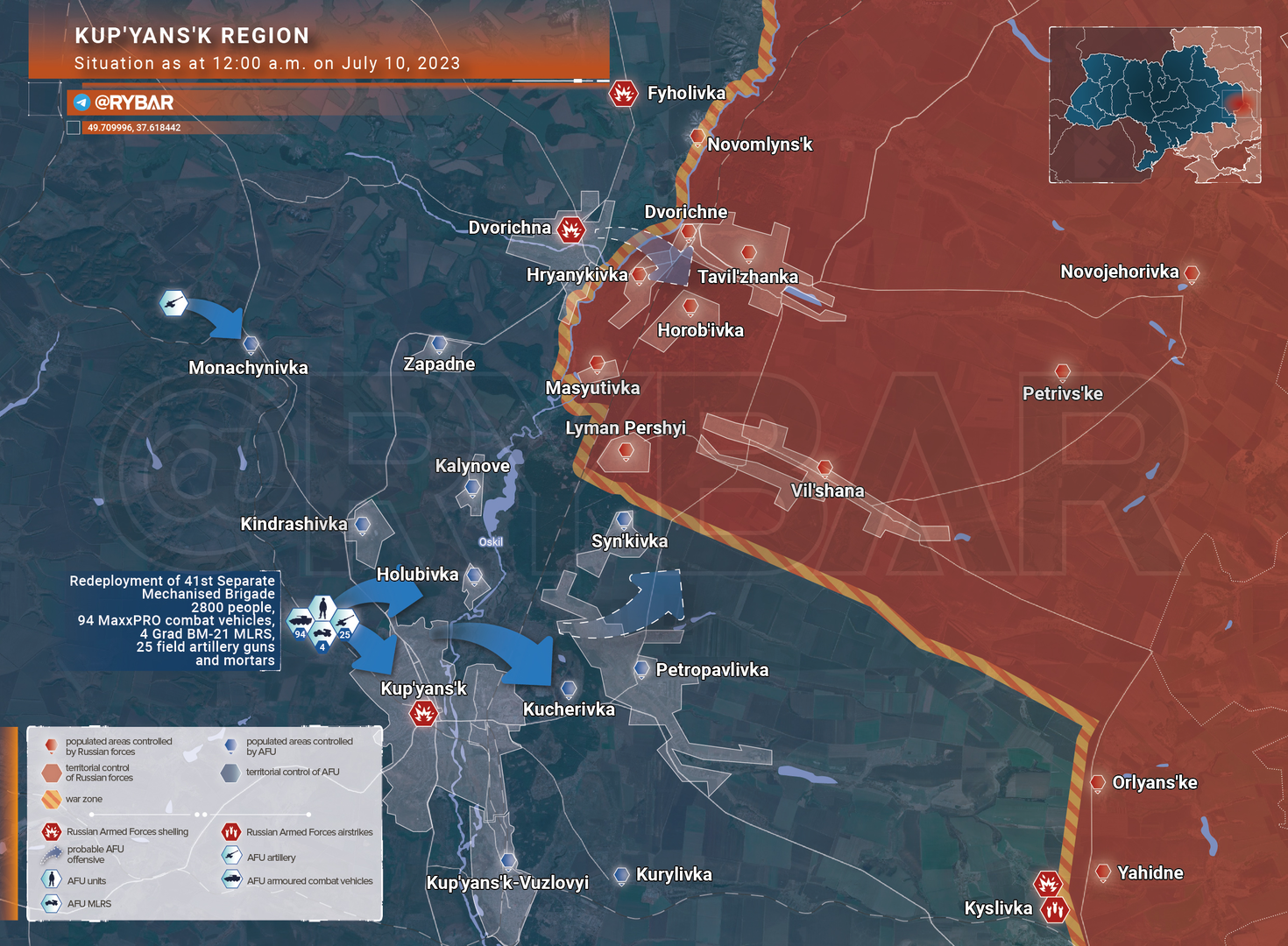 ❗️🇷🇺🇺🇦 Tình hình Kupyansky tính đến 12:00 ngày 10 tháng 7 năm 2023