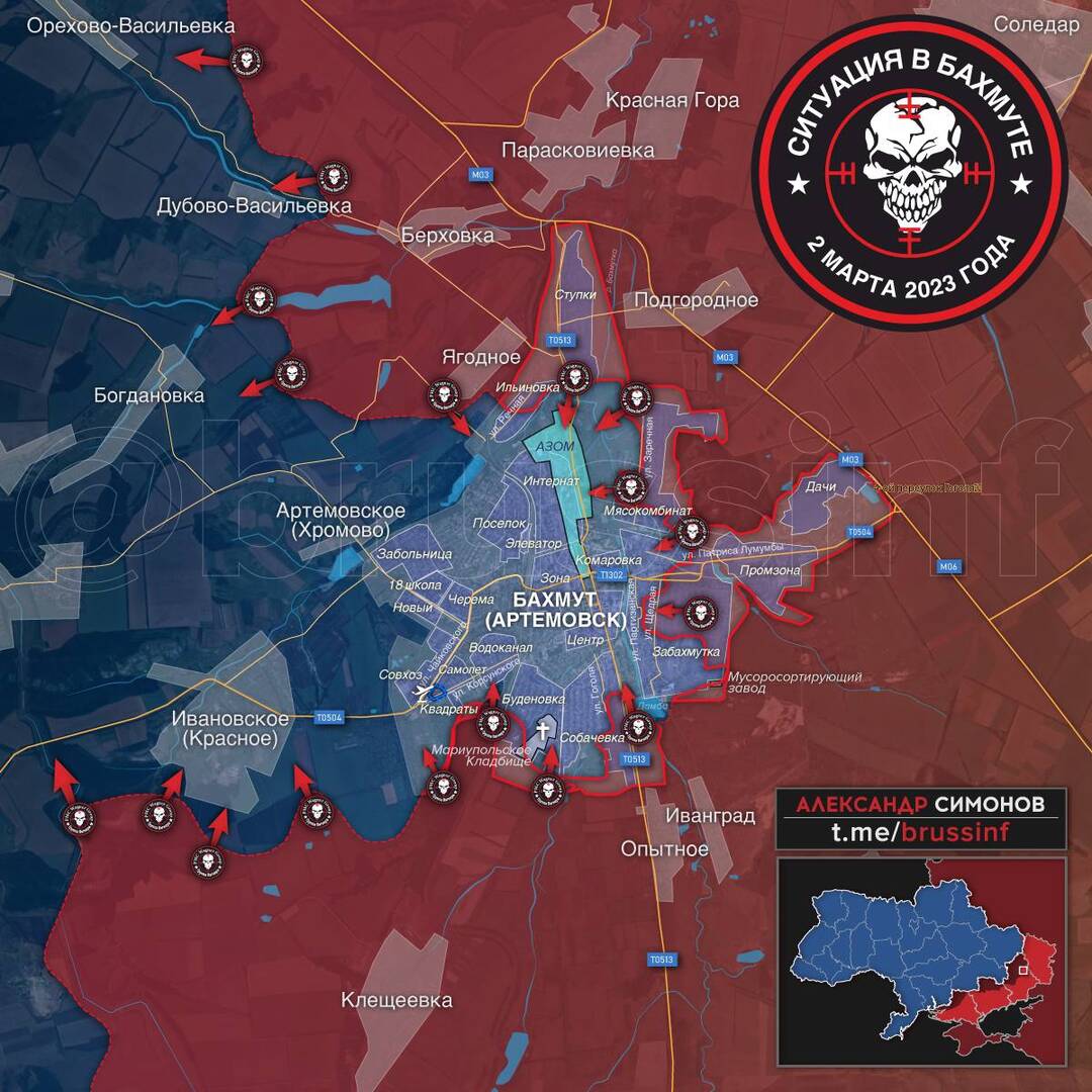 "Wagnerites" tiến dọc theo Phố Gorky về phía tây và đến gần Phố Partizanskaya. Tin tức về việc kiểm soát hoàn toàn khu vực Zabakhmutka vẫn chưa phải là sự thật.