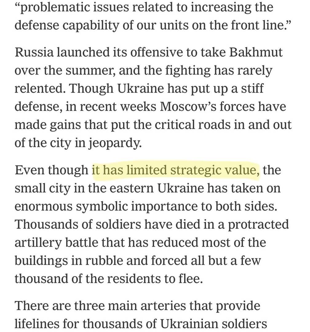 "Hơn hai tuần trước, tại trụ sở chính, Zaluzhny (người đứng đầu Lực lượng Vũ trang Ukraine) đã đề nghị bình tĩnh rút quân khỏi Bakhmut; bây giờ Syrsky (chỉ huy nhóm phía đông của AFU) đang từ bỏ quân tinh nhuệ để tạo hành lang cho việc rút quân của quân đội từ thành phố." Có bao nhiêu binh lính và thiết bị có thể được cứu nếu chỉ huy của lực lượng mặt đất phía đông suy nghĩ chiến lược và không theo đuổi tham vọng cá nhân của mình?