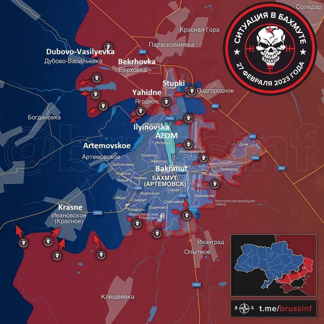 ◽️Ở phía bắc của các vị trí "Wagner", vùng kiểm soát được mở rộng đáng kể về phía tây nam Berkhovka;